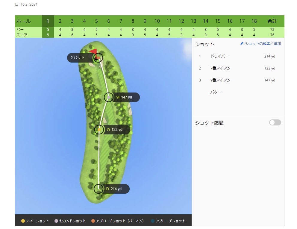 スマホでもショットの履歴が見れたり編集することは可能だけど、PCでも編集ができるのでラウンド後の反省にはもってこい。また、ショット履歴をみていると同じコースでの過去のラウンドのショット履歴がみれるので、自分の傾向が分かって良い。