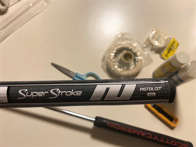 スコッティキャメロンのマタドールオーバーサイズは、自分的に少し太く感じてて、ヘッドの重さを感じにくい。そのため重りも15gから30gに変えて少し良くなった感はあるけど、スパイダーに刺さってるSuperStroke Traxion PistolGTをネットで新たに購入。バランスとか分からないけどとにかく交換。