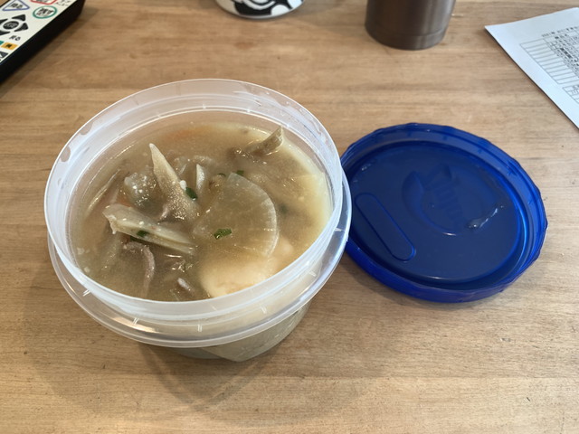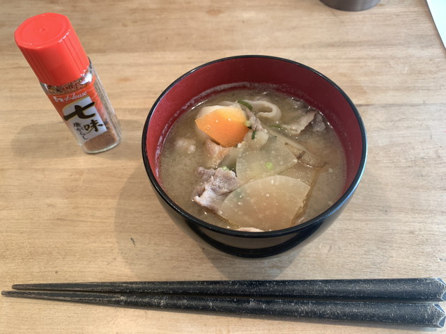 昨夜食べれなかった豚汁が本日の朝食。少し残ったのでお昼ご飯でも食べる。