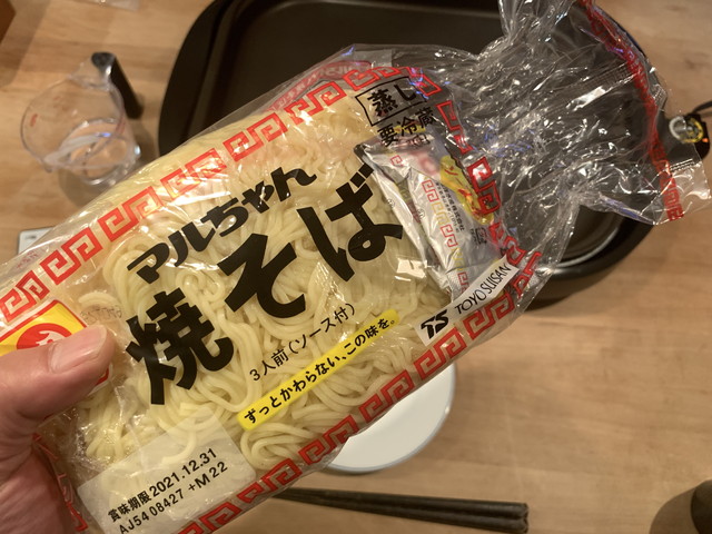 夕飯は、ホットプレートで焼きそば。うちでは定番のマルちゃん焼きそば!