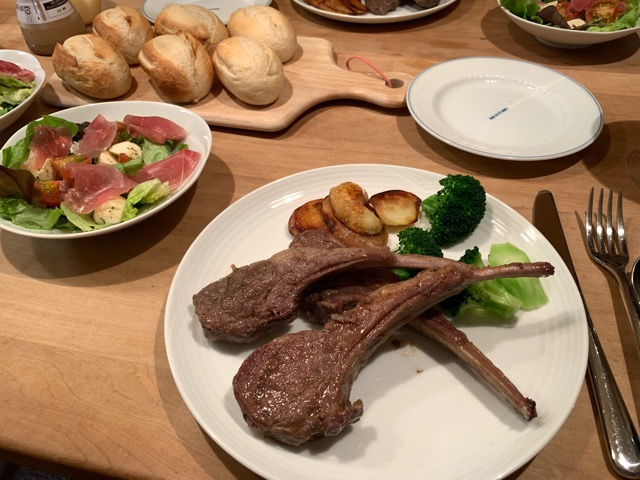 息子を迎えに行って、夜ご飯はターキー、いやチキンならぬラムだって。