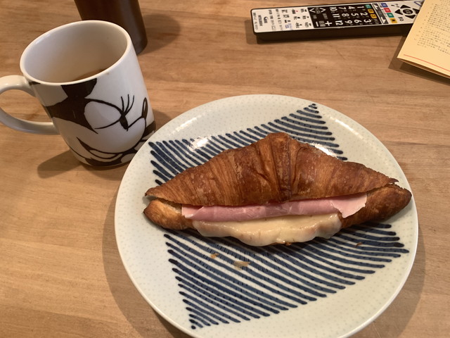 朝食はいつものクロワッサン。レタスがなかったのでハムとチーズのみ。それでもうまいよ。