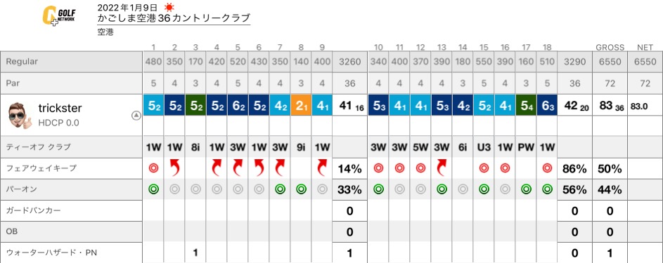 前半のフェアウェイキープ率14%なのに後半は86%。後半パーオン率がそこそこなのにパットが悪い。