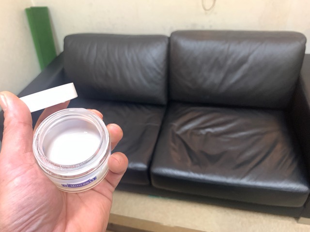 事務所のソファーにひび割れを発見したので、全面的にデリケートクリームを塗り込んだ。新品開けたのに半分なくなった…。
