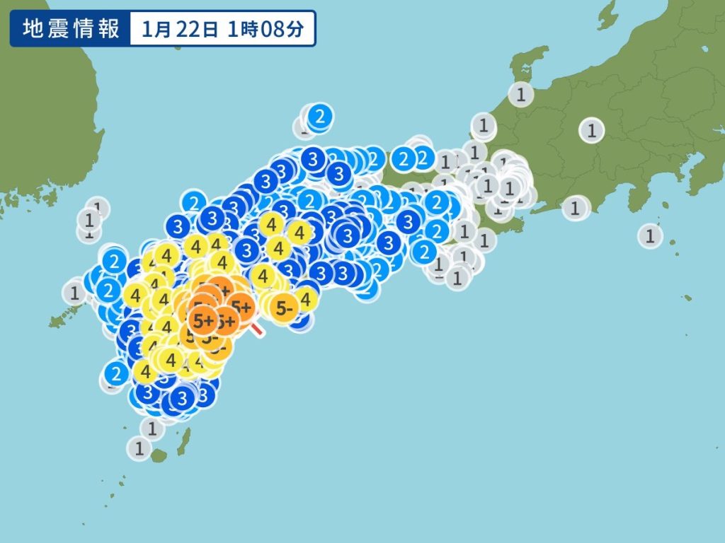 昨夜の地震は久しぶりにビビった。緊急速報がなって1秒後にでかいのが来た。1時8分日向灘を震源地とする地震。うちのあたりは震度4。
