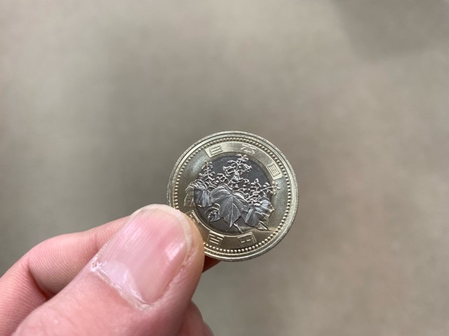 新しい500円を初めて見た。たまたまポケットに入ってた。見た目はポンド£っぽいけど、ポンドより薄くてでかい。