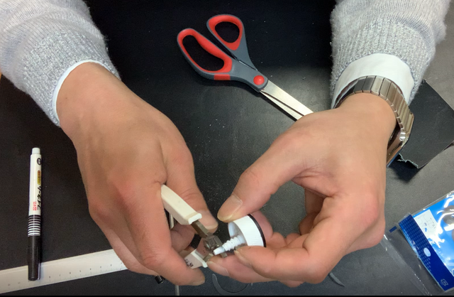 - ゴム脚に穴開けて、余分な部分を切り取る。