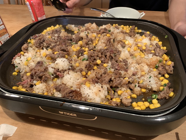 今夜も超簡単なホットプレート飯。3人で2合のご飯をペロッと食べちゃったよ。