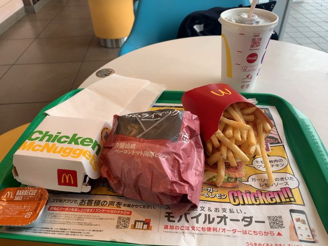 お昼ご飯は実習生の希望でマック。モバイルオーダーって便利だね。マックのソファーから一歩も動かずにオーダーと支払い完了して、さらに持ってきてくれるなんて。