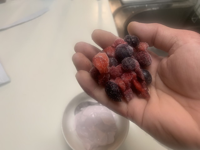 アサイーに冷たいベリー乗せるとうまそう。ヨーグルトとかにも合いそうだね。今年の夏はフローズンフルーツや!