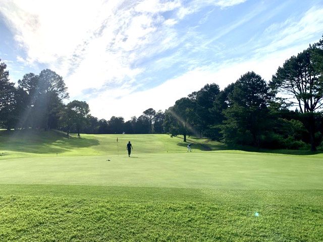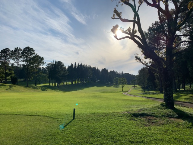 前半はインからのスタートで1バーディ2ボギーの37。ドライバーが当たらず距離が出ない…。何とか凌いでる感じ。16Hのロングで2オンして何とかバーディ。