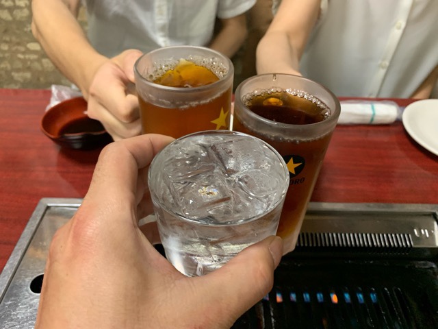 この日が結婚記念日だったから焼肉でお祝いです。ゴルフの反省もする。
