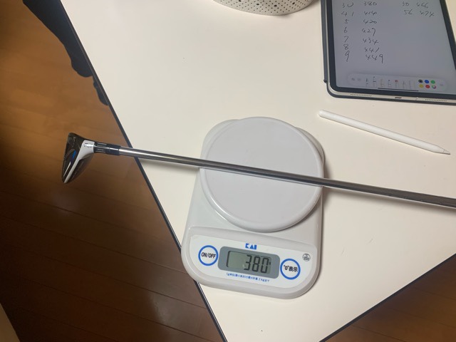 ということで、今セッティングしてるクラブの重量を測ってみた。