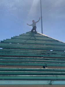 当然ながら今日も普通に仕事で会議もちゃんとやりましたよ。会議の後には昨年の台風で屋上の屋根の一部を剥がすという激務もあって…。