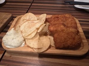 画像にも貼ってるけど、フィッシュ&チップス頼んだら、白身魚のフライ&ポテトチップスがきた。しかもタルタルww。これ絶対に料理知らないで作ってるよね。(値段そこそこするのにね…