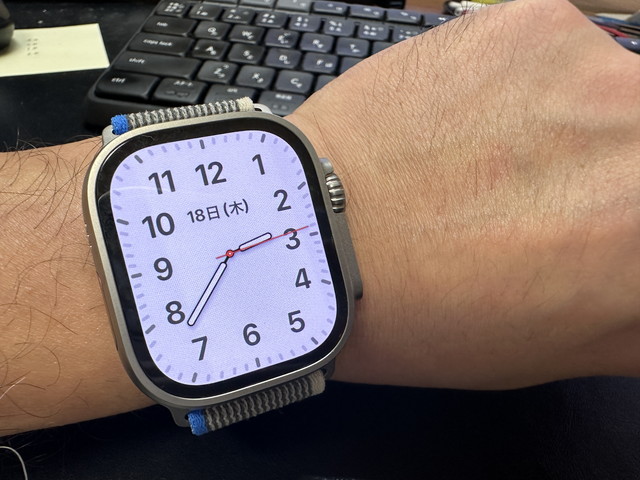 大きさ的には今までのシリーズ5は44mmだった気がするけどULTRAは49mmとでかい。重量も49gに対して62gと少し重くなってるけど、つけた時の存在感が半端なく良い。バッテリー駆動も18時間に対して倍の36時間。省電力で使えばなんと60時間も持つ。1泊2日程度の旅行や出張であれば充電器も不要。高速充電対応だから入浴時など時計を外しているわずかな時間に充電すれば良い感じ。