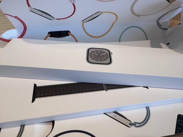 このところのAppleWatchのシリーズは8。それとは別にULTRAという上位機種もあるけど、別にダイビングもしないし、登山もしないし、値段高いし、普通でいいかなと先週の木曜日にAppleStoreのオンラインでシリーズ8を注文。