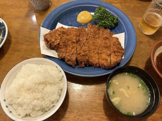 夕飯はトンカツ。ビッグロースカツ。カミさんの分を半分食べだので1.5人前。