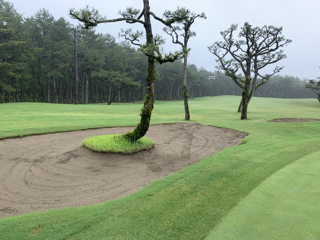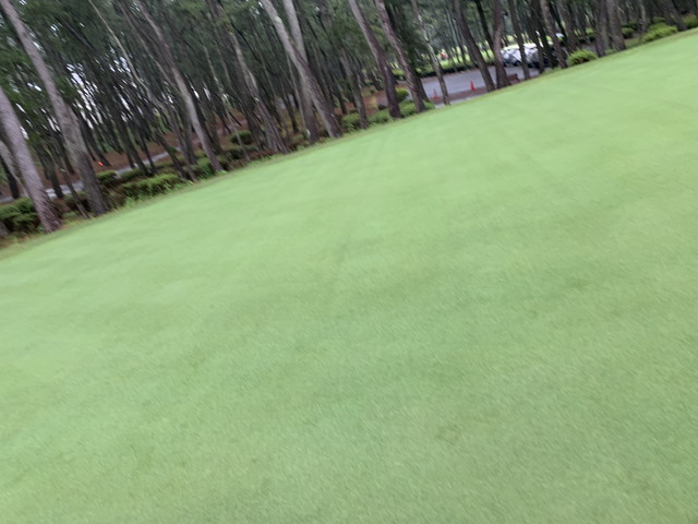 トムワトソンのような狭いコースで前半は林に入れたのは1回だけ。しかも左が浅いOBで怖くて逃げて、ペラって右の林に入ったぐらい。それよりもダフリがひどかったな。芝生の下は砂が多くて、少しでもダフったら全然距離が出ないのよね。それとパットもひどかった。2、3mのバーディパット外しまくるし。
