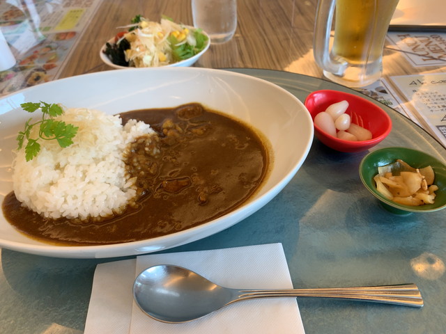 お昼はおひとり様カレー。これもしょうがない。しかも休憩30分だって。一番早いのがカレーって言われたからそのままオーダー。一杯だけのんじゃいました。競技中なのにすんません。