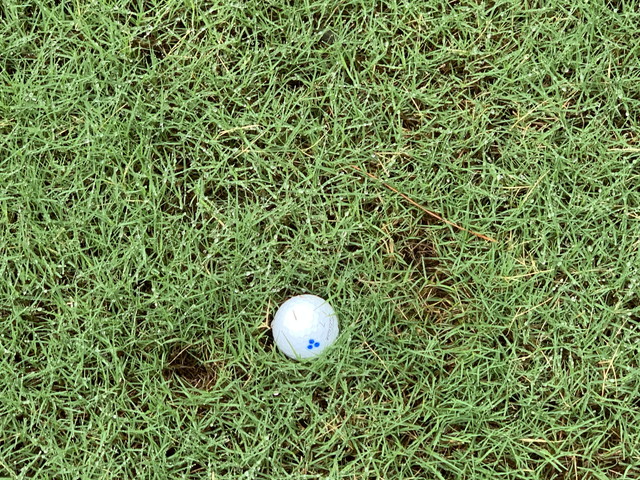 後半の出だしもナイスショット!しかし、いつも打ち慣れていない芝だとやっぱり駄目だわ。どうやって打って良いのか分からない。打ち込んだ方が良いの?払った方が良いの?