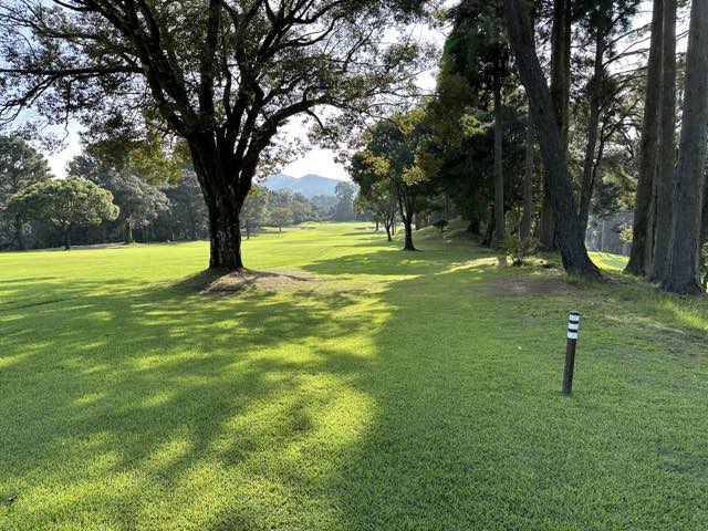 後半は、シャンクでたり、ティーショット曲げて樹の根っこにあったりして43と平凡なスコア。