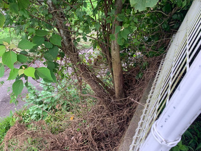 本当なら、除草剤をまいて雑草を駆除したいところだけど梅雨が明けても毎日雨が降る状態なので除草剤を撒くことができない。
