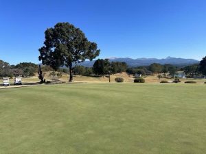 6I、8I、Pwを持って隣のコースへ下っていくことに。樹々も背が高いので、元のコースへ戻すのも至難なんだけど、打ち出す方向が奇跡的に開いてて、6Iでハーフショット。元のコースのフェアウェイ右サイド戻すことができた。そこから3打目をPwで打ってピン手前4mのバーディチャンス。これを沈めてバーディスタート。