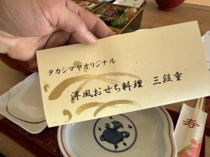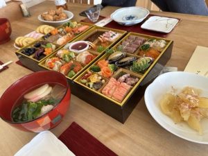 朝から会社に行って2時間ほど作業して帰宅してからのお節料理。今年は高島屋の洋風おせち。雑煮が美味い。