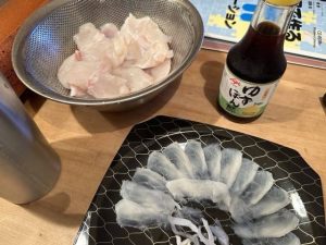 年末に駆け込みでふるさと納税を申し込んだやつ。てっさとてっちり。大皿じゃないのでしょぼく感じる。