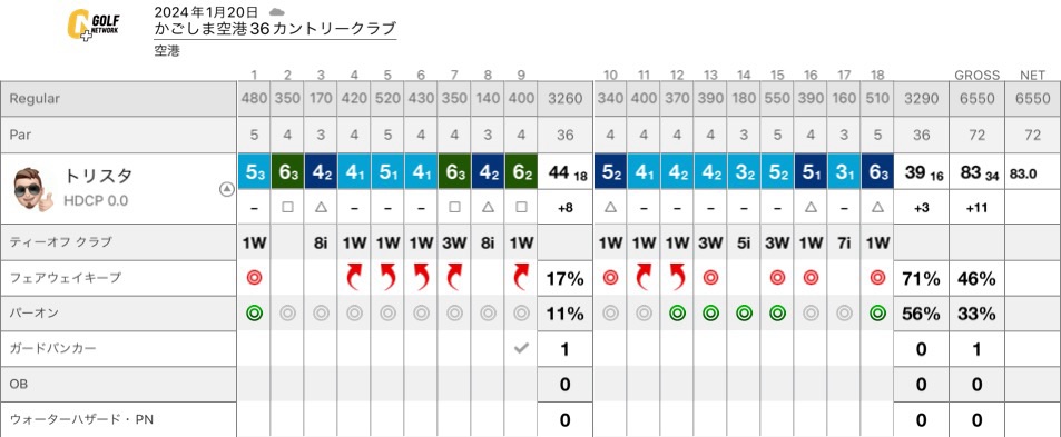 後半は手元意識にも慣れてきてショットが改善。ティショットもウッド系も当たり出してきた。その割にパットがいまいちで数回のバーディを逃したわ。