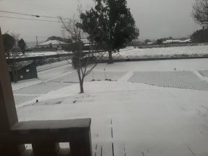昨夜から降ってきた雪の影響で数センチの積雪。昨夜のうちに、早番の人には、出勤時は無理せずに連絡するようLINEで伝えておいた。