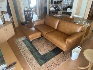かっこいい。これは3人掛けだけど、スツール付きだから家族が帰ってきても大丈夫。