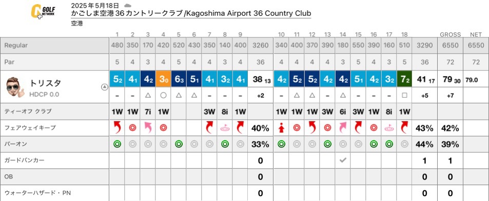 今日もスコア良くて41-38。スイング変えてからスコアが出るようになった。
