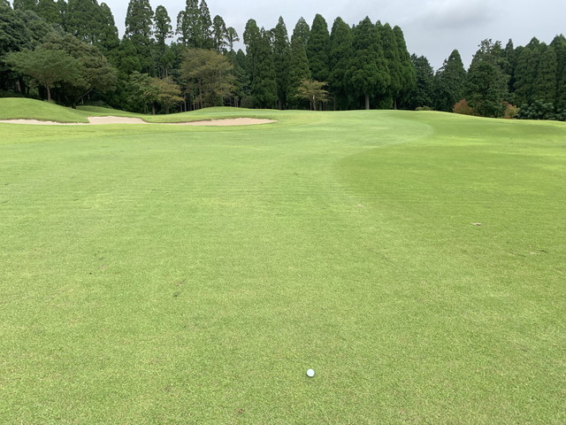 OBまで行かなかったのが救いだったけど、飛距離が出てないので、2ndは無理をしないように心がけてショットをしていく。無理にパーを狙うのではなく、ボギーを狙っていく戦略。