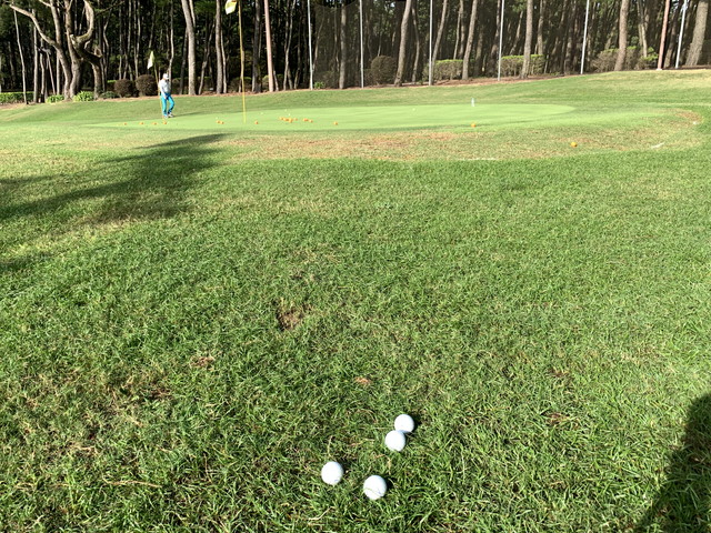 アカデミーに着くまでに練習ボールを50球にしようかな?、100球にしようかな?と考えてたのに受付に行ったら、「今日は36球制限です」って言われたので少し焦った。だって、ここの芝って他のゴルフコースと違ってフワフワしてるから、アプローチ練習をたくさんしたかったのに...。