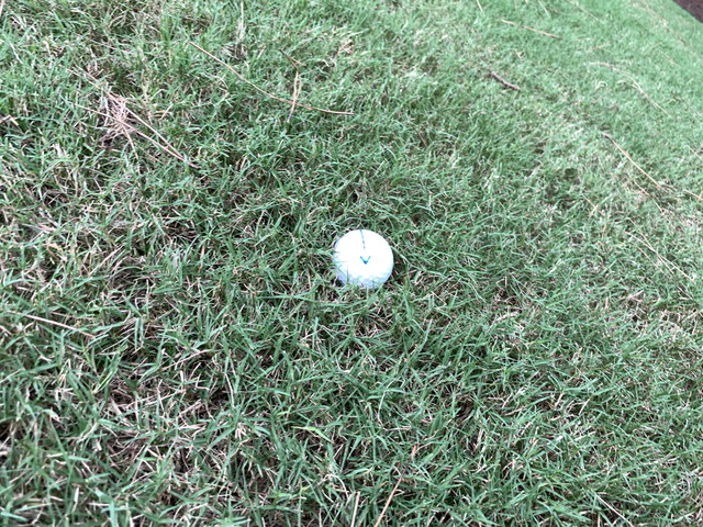 上がり3ホールでグリップに力入ってるのに気づき、「グリップゆるゆる打法」を意識してのショット。時すでに遅しだけど、これでショットが良くなった。
