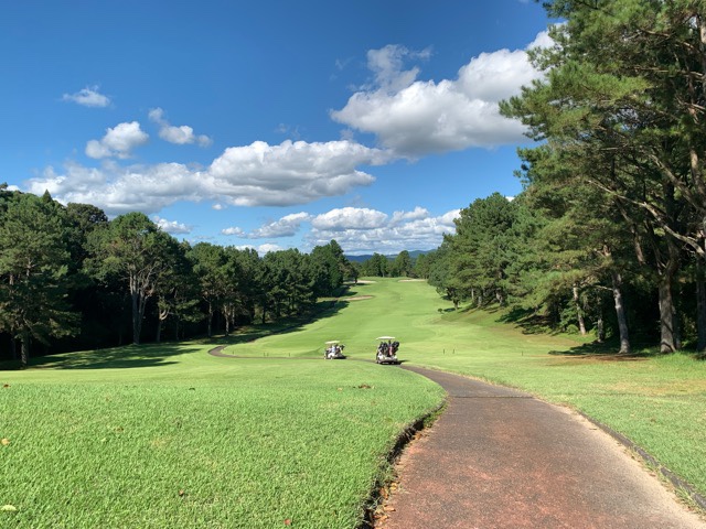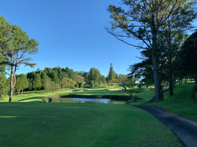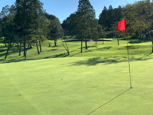 続いて打ち下ろしの2番ホール。ここも確実にパーオン。1stパットを1mオーバーして、肝心のショートパットを外す痛恨のミス。強く打てなかったな。3パット。そこからはパーとボギーがでて、前半は38。パット数は18。3パットを2回もしてる。